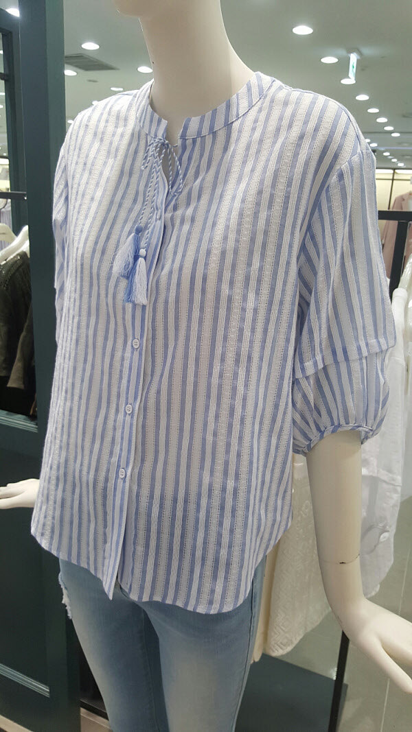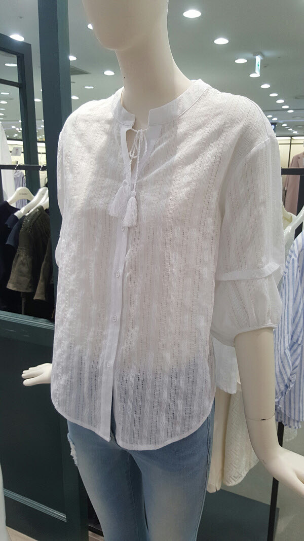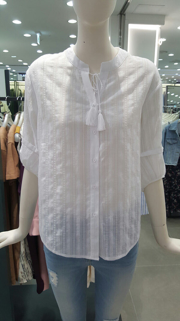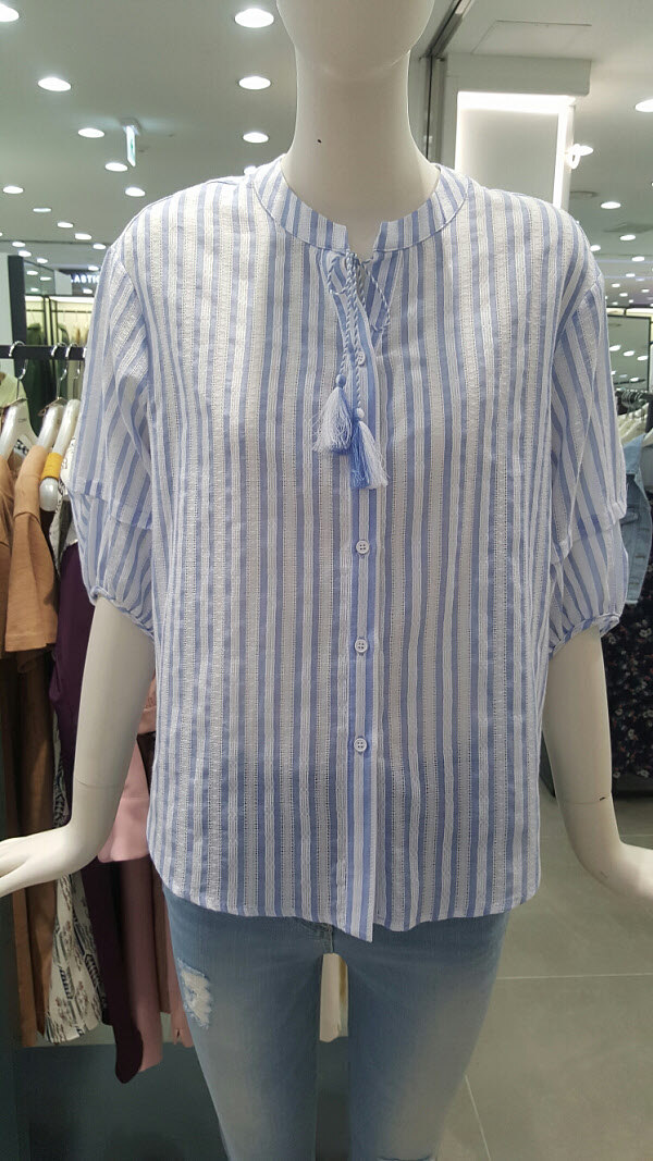100%아사면 블라우스예요~원단자체 무늬질감도 이뿌고 태슬 포인트가 돋보입니다~시원하면서 여성스럽게 입으시기 너무 좋아요~여러 아이템들과 매치해서 이뿌게 입으세요 ~