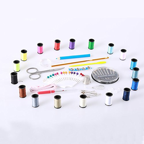 - All-in-one Design- This sewing kit includes 15 kinds of sewing materials(18 small coils, high-quality dial (30-pin), plastic beads needle box, magnifying glass, crochet, stainless steel scissors, marker pen, tape measure (inch cm), safety needle, threading device, buttons and hidden button, metal thimble, retractor, etc. And there are 87 pieces of small items in total.