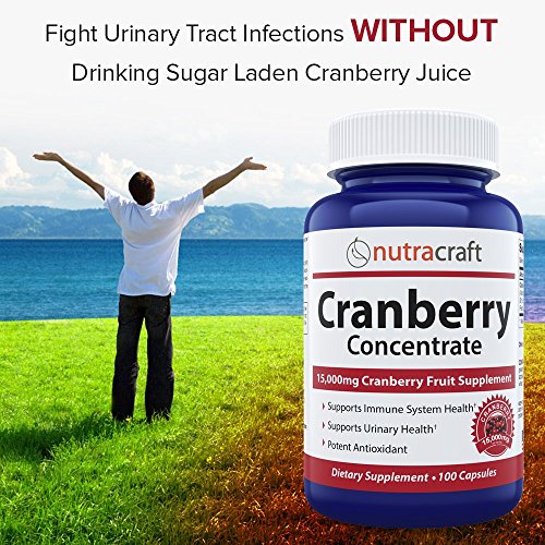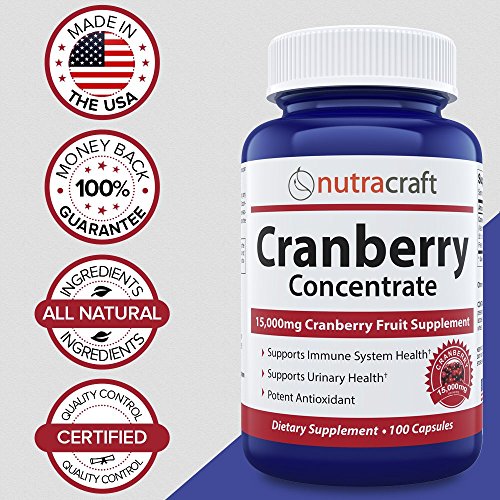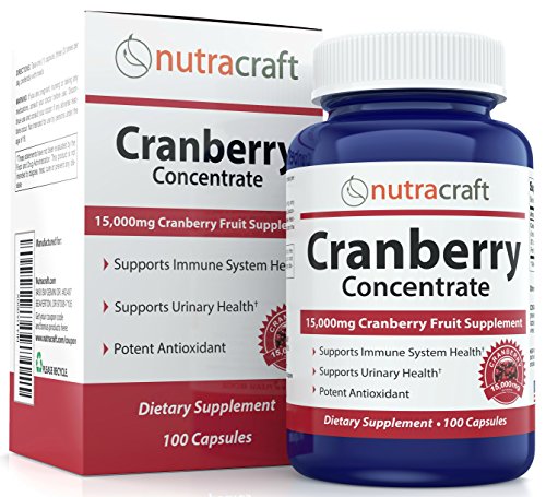 -. Binding : Health and Beauty -. Brand : Nutracraft -. EAN : 0646437310925 -. Feature : WHY NUTRACRAFT CRANBERRY CONCENTRATE -We start with the best quality ingredients, and keep our supplement pure by not adding any fillers. Scientifically formulated, with a huge 15,000mg of Cranberry fruit equivalent per capsule, Nutracraft Cranberry concentrate is manufactured in the USA in a FDA registered facility under GMP standards so you can TRUST the quality. / PREVENT DREADED UTIs - Prevent the horror of bloody urine and the pain and suffering from another urinary tract infection. Cranberry is known for its ability to support your urinary tract and keep it clean from bacteria. This amazing fruit contains a special type of sugar called mannose that makes it difficult for bacteria to reside in your urinary tract walls and bladder and set up an infection. / WHY OUR CRANBERRY COMPLEX IS THE BEST - 50:1 concentrated capsules with a massive 15,000mg Cranberry Fruit equivalent per small capsule. Great value for money with 3x as much Cranberry extract as other products on the market but at a similar price. / FAST SHIPPING & WORLD CLASS SUPPORT - We ship directly from Amazon warehouses so your product arrives sooner. Receive a FREE ebook "How To Fight Urinary Tract Infections Fast With Nutracraft Cranberry" (via email) with purchase to help you get the best results, faster. / 100% MONEY BACK GUARANTEE - We batch test and third party test our Cranberry Extract for both potency and safety. Our lab controls insure this supplement and every supplement in our Nutracraft line. If you're unsatisfied with the product whatsoever we'll give you your money back. -. IsAdultProduct : 0 -. Label : Nutracraft -. Manufacturer : Nutracraft -. MPN : 1 -. PackageQuantity : 1 -. PartNumber : 1 -. ProductGroup : Health and Beauty -. ProductTypeName : HEALTH_PERSONAL_CARE -. Publisher : Nutracraft -. Studio : Nutracraft -. Title : Triple Strength Cranberry Extract Supplement For Bladder & Urinary Tract Infection UTI Support - Extract Equal to 15,000 mg of Fresh Cranberries + Polyphenols per Capsule - 100 Capsules per Bottle -. UPC : 646437310925