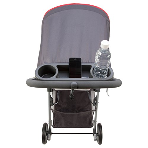 - Feature : Holds child up to 50 pounds / Simply lift up to fold compactly - easy to store or take along for the ride / Parent tray with 2 cup holders and storage tray, child tray with cup holder / Infinite recline, adjustable canopy / Large, easy-access storage basket
