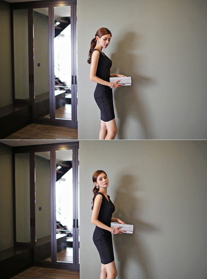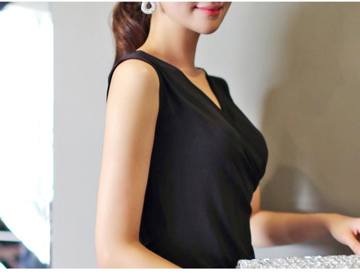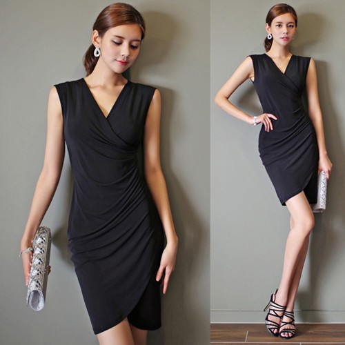 商品名:カシュクールワンピース 無地 ミニ丈 セクシー ノースリーブ タイトワンピ