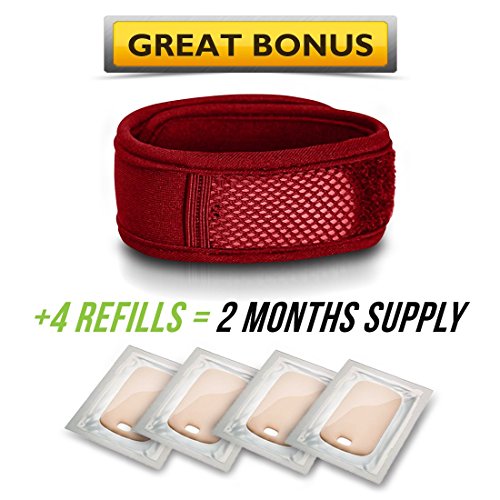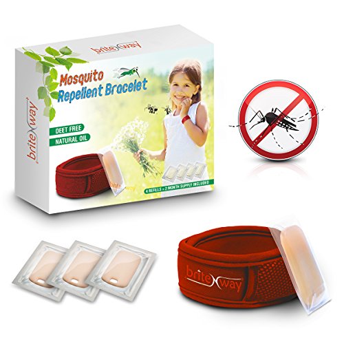 Mosquito Repellent Bracelet - All Natural Waterproof Repeller Wrist Bands plus 4 Refills - Deet Free Pest Ants and Insects Protection No Spray - Safe for Kids, Babies (RED)