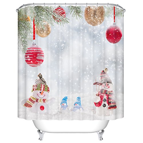 Ormis Christmas Background with Snowman Mildew Resistant Polyester Fabric Shower Curtain Set With Hooks Bathroom Accessories 72"(w) x 72"(h)Fabric Bathroom Shower Curtain Set with Hooks , 72X72 inches