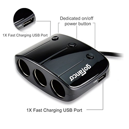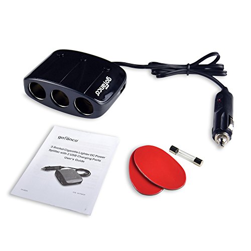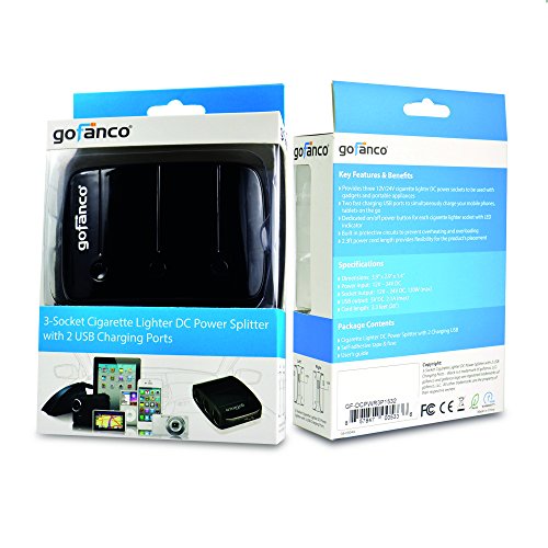 -. Binding : Wireless Phone Accessory -. Brand : gofanco -. Color : black -. EAN : 0857847005336 -. Feature : Provides three 12V/24V cigarette lighter DC power sockets to be used simultaneously with gadgets and portable appliances / Two fast charging USB ports to simultaneously charge your mobile phones, tablets on the go / Dedicated on/off power button for each cigarette lighter socket with LED indicator / Built in protective circuits to prevent overheating and overloading / 2.3ft power cord length provides flexibility for the product's placement -. Label : gofanco LLC -. Manufacturer : gofanco LLC -. Model : DCPWR3P -. MPN : DCPWR3P -. PackageQuantity : 1 -. PartNumber : DCPWR3P -. ProductGroup : Wireless -. ProductTypeName : WIRELESS_ACCESSORY -. Publisher : gofanco LLC -. Studio : gofanco LLC -. Title : gofanco® 3-Socket Cigarette Lighter 12/24V 120W DC Power Splitter with 2 USB Charging Ports to power in-car gadgets and also charges mobile devices -. UPC : 857847005336 -. Warranty : 1-year limited