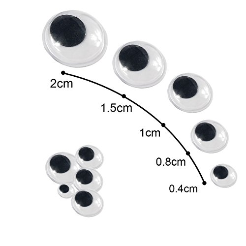 - 100 pcs self-sticking wiggle eyes. Assorted Sizes: 5 mm,8mm,10mm,15mm,20mm