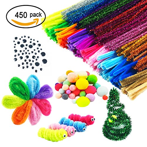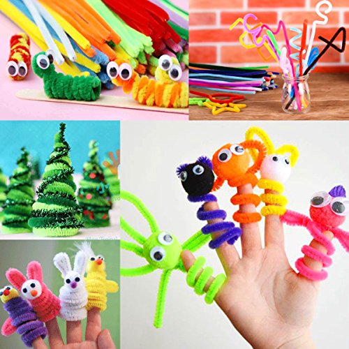 - Super Value:Include pipe cleaners,glitter pipe cleaners, self-sticking wiggle eyes, pom poms.All your need for Chenille Stem craft are included.