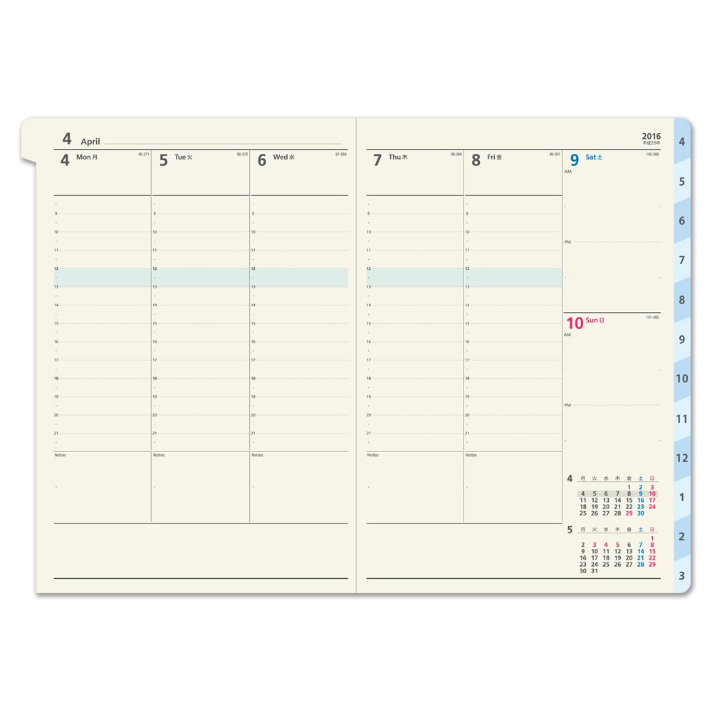 It's easy to use for 1 year, and I purchased the same one again in different colors. It is good if the left side is vertical (week) and the right side is memo column. The heading of the moon is a step, I also like the easy to see.
