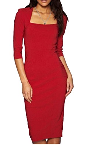 -. Title : LECHEERS Women Square Neck 1/2 Sleeve Bodycon Buisness Formal Pencil Midi Dress