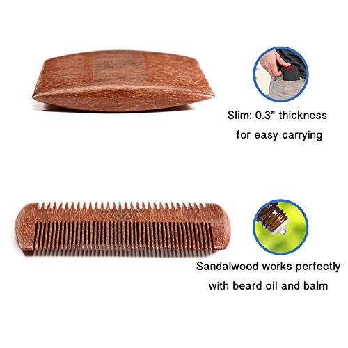 - WOODY SCENT, NICE TOUCH, NO PULLS, SNAGS, OR STATIC: Finely crafted from a solid piece of high quality red sandalwood into even and straight comb teeth that leaves your beard smooth and smelling refreshed. Wooden ecstatic and static-free combing will make you want to keep combing. The rounded teeth ends provide a gentle massage-effect on the skin. Works perfectly with beard oil and balm because the sandalwood helps distribute serums/oils evenly.