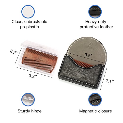 - HEAVY DUTY PROTECTIVE BLACK PU LEATHER CASE: Provides heavy duty protection to the comb, allowing it to withstand many forces. The beard comb leather size is 3.8" x 2.5" x 0.5". It is sturdy and durable but not too bulky to carry in your pocket. Also suitable for ID cards, credit cards, business cards and more! Perfect for traveling and on the go!