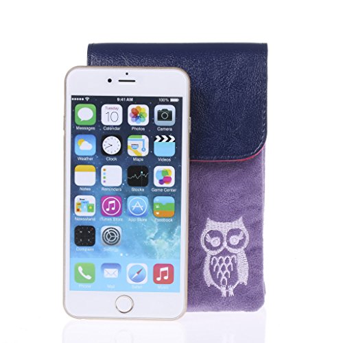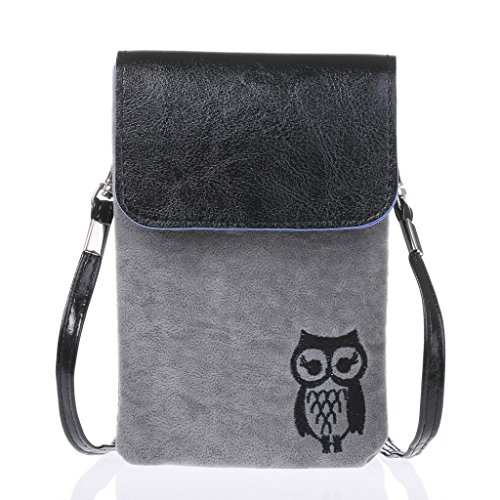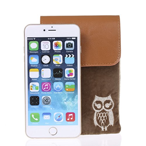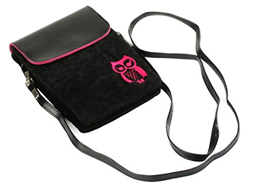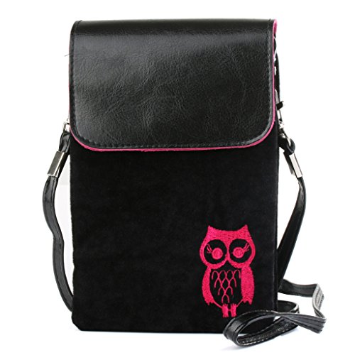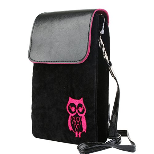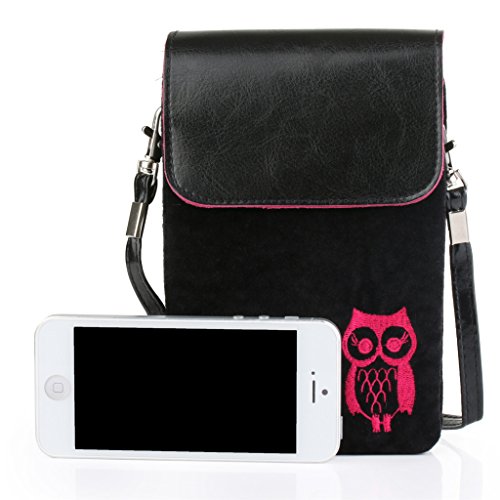 Cute fuzz Fabric with pu leather cover cellphone shoulder pouch purse for girl from Bosam owl pattern for iphone 6 6s plus 5 5s 5c any phone under 5.5" (Black)