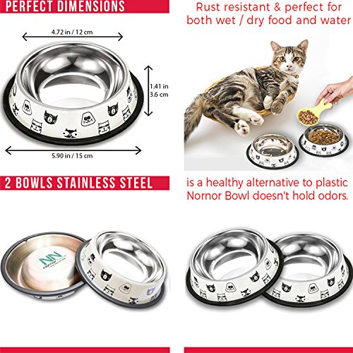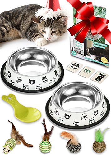 Offer Your Cat The Happiness It Deserves With This Incredible, Fully Complete Cat Food Bowls Cat Toys Supplies Box Brought To You By Nornor! Do you have an adorable little buddy at home that you take great care of? Or are you looking for a great gift idea for your cat-lover best friend? Whichever the case, don't worry because Nornor has just the thing you're looking for! ? HIGH QUALITY CAT BOWLS IN STAINLESS STEEL! ? DISHWASHER SAFE EASY TO CLEAN! ? NON SKID / NON SLIP CAT FOOD BOWL SET! ? CUP FOR THE PERFECT PORTION OF FOOD! ? TOYS MADE OF NON-TOXIC NATURAL MATERIALS! Grab Our Deluxe Nornor Cat Accessory Set! It doesn't matter if you already have 3 cats that you love, or you've just gotten your first one; our set was specially designed to cover the needs of the most demanding owner - and of his/her cat, of course! The cat bowls included in our set are ergonomically designed, they are durable - being made of stainless steel, and they ensure a spill free meal for your four-legged, furry friend. The set of toys contains three balls of different colors and a tricky little mouse - all of them with a feathered tail that will wake the hunter's instinct and ensure hours of playing with your cat! Moreover, we included a cup for the perfect amount of cat food, and two bonus gifts as well! A great book which contains 10 extremely useful tips about your cat's alimentation needs and a set of 3 cat-stickers that complete the cat owner's kit! You Your Pet Will Love Our Set - Or We'll Give You Your Money Back! We have given our best in order to offer you the best quality cat supply set your money can buy. However, in case it doesn't meet or exceed your expectations, don't worry! Just contact us, and we will refund your money or replace the accessory you need as soon as possible; your satisfaction is the most important to us! 0