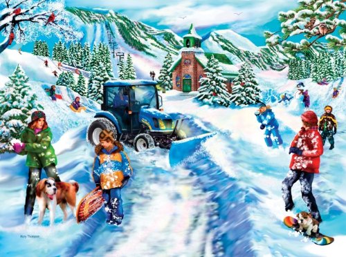 -. Feature : Clearing the way 1000 pc jigsaw puzzle -winter fun puzzle- by sunsout. / 1000 piece puzzle - completed size: 20x27. / Puzzle artist: mary thompson. / Eco-friendly - soy-based inks - recycled board - made in the usa. / Interlocking pieces & durable construction.