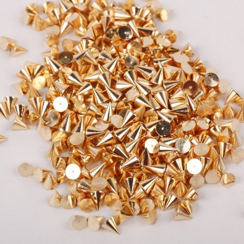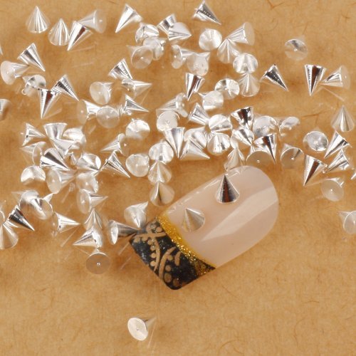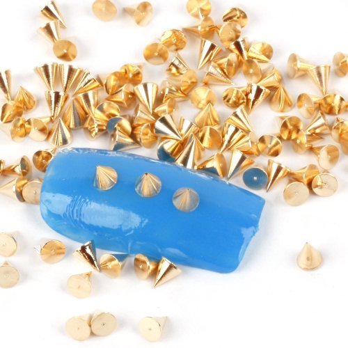 Specification: Diameter: 3mm Height:3mm Material: Alloy Color: Silver Gold Package Contents: 100pcs Hot Punk Stunning Cone Nail Art Manicure Spikes Studs
