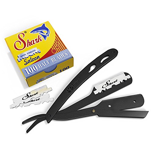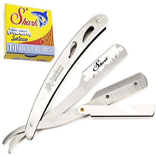 Equinox Professional Stainless Steel Straight Edge Razor with 100 Single Edge Shark Blades