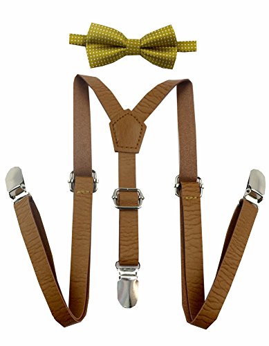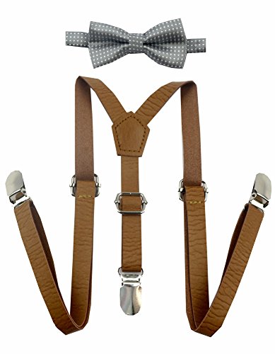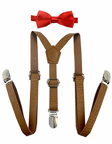 | (Apelna)/Accessories/Suspenders Cummerbunds/DIRECT FROM USA/Skinny Leather Suspenders with Bow Tie for Baby, Toddler, Kids and Children Boy |