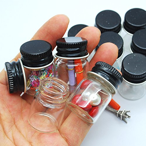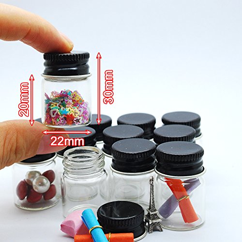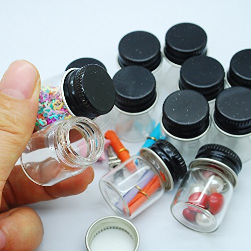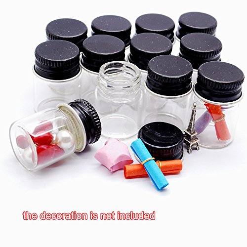 12pcs 5ml Vials Clear Glass Bottles Glass Bottle with Black Aluminum Screw Top Strong Cute Empty Sample Jars For Message Bottle, Samples, Scrap-booking,Wedding Favors, Wedding decorations, storage accessories