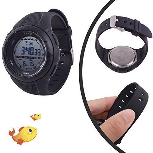 -. Feature : Digital Movement; Original Japanese Battery; Military 24H Time Mode; Gift Box; Great Gift For Children's Day/ Birthday/ School Day/Christmas / High Quality Plastic Dial Window; Quality ABS Case with Stainless-Steel Back; Comfortable Adjustable PC Band with Buckle Clasp / Multiple Function: Calendar Month Week Date, Alarm, Stop Watch, Shock Resistant, LED Display, Back Light, 5ATM Waterproof / Excellent Customer Service to Buy in Confidence, 7 Days Money Back Guarantee and 60 Days Product Warranty Since The Purchase Date / Great Starter First Digital Watch for Grade School Kids; Fancy Simple Designer Watch for Boys/Kids; Perfect for Indoor Outdoor Sport Activity