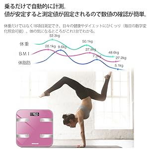 値が安定すると測定値が固定されるので数値の確認が簡単、段中だけではなく、18項目測定でき、日々健康管理やダイエットにぴったり(毎日の数字変化照合可能)お身体の気になるところがこれ一台でわかります。
