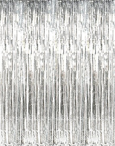 GIFTEXPRESS 1-Pack Silver Foil Fringe Curtain for Party Backdrop/ Party Photo Booth Backdrop/Foil Fringe Backdrop