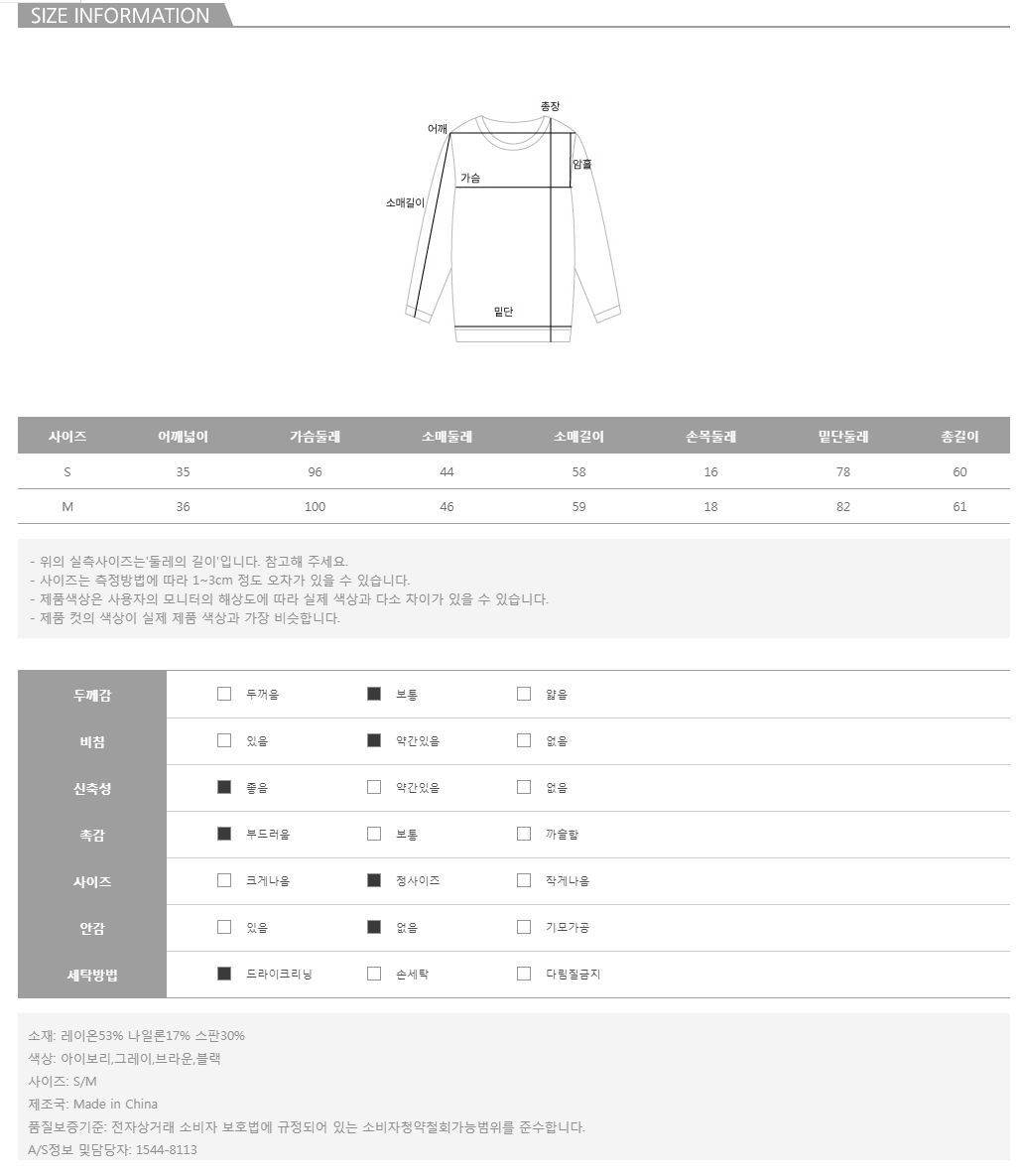 적당한 두께감으로 환절기부터 입기 딱 좋은 니트예요.