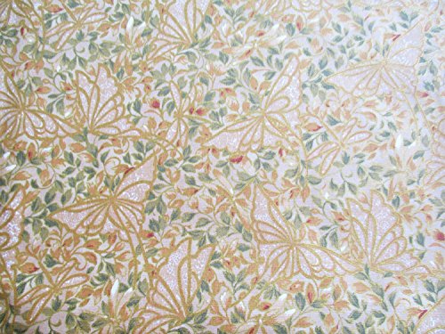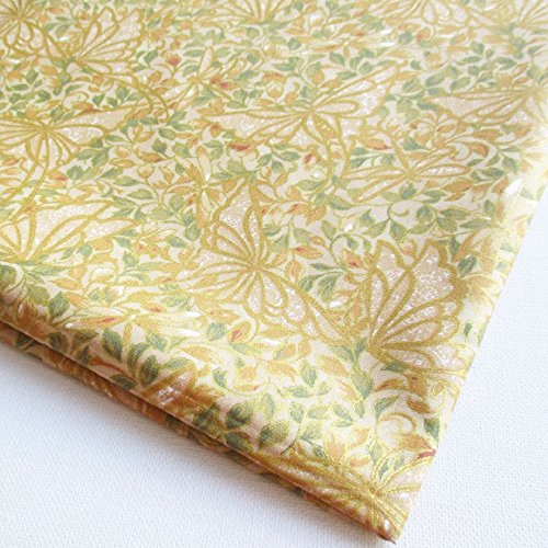 Np Fabric Asian Japanese Kimono Fabric Flower on Yellow Gold 36 by 36-Inch Wide (1 Yard) (KM059)