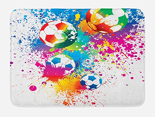 Soccer Bath Mat by Ambesonne, Colored Splashes All over Soccer Balls Score World Cup Championship Athletic Artful, Plush Bathroom Decor Mat with Non Slip Backing, 29.5 W X 17.5 W Inches, Multicolor