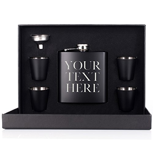-. Title : P Lab Your Text Here Customized 6 Piece Flask Set w Gift Box - Engraved 6oz Stainless Steel Hip Flask Custom Personalized Engraved Flask Gift Set, Matte Black
