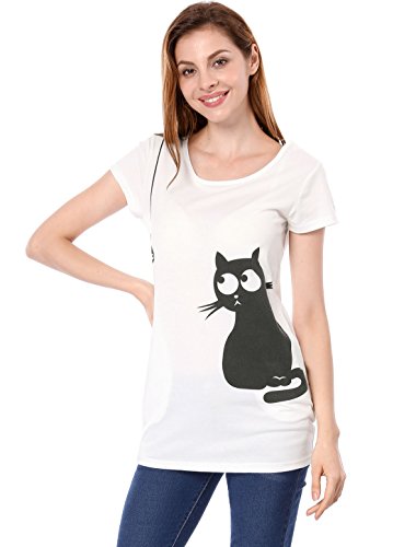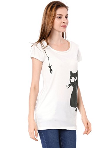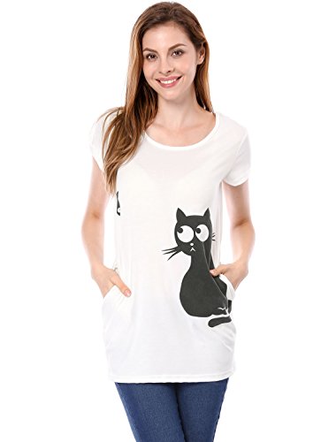 원본상품명: Allegra K (JP) レディ?ス チュニック トップス Tシャツ ?型カバ? 丸首 半袖 猫柄 カジュアル ホワイト XL