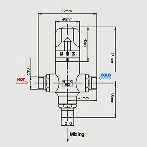 KES ML100 SOLID BRASS 3-Way Thermostatic Mixing Valve G 1/2 Male Connections, 68-119 ¨H Stepless Adjustment