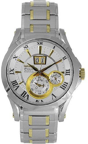 -. Title : Seiko SNP022P1 Men's Two Tone Stainless Steel Kinetic Premier Perpetual Calendar White Dial Watch