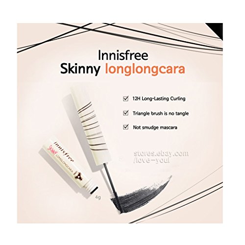 -. Feature : Innisfree Skinny Long Long Cara 2pcs / 0.14 Oz/4g x 2 / Makes yout eyelash looking long n neat with triangular shaped brush. / Keeps your eyelash curling for over 12 hours without sagging eyelash. / Lasting long n clean without smudge.
