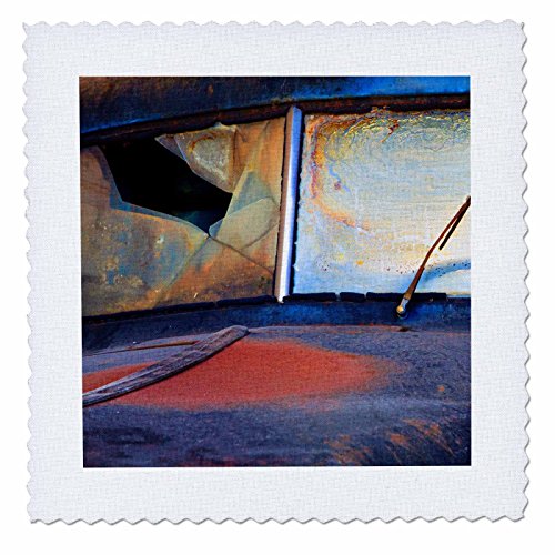 3dRose qs_207506_4 North America, Usa, Georgia, Windshield of An Old Rusty Truck. Quilt Square, 12 by 12"