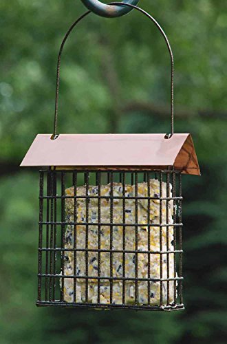 -. Feature : Woodlink Coppertop Suet Feeder diamond shape attracts a variety of tree clinging birds / Holds 1 suet or seed cake / Overhanging copper roof protects food from the weather / Lift up lid to refill / Fully assembled, included metal hook for easy placement