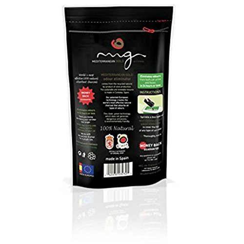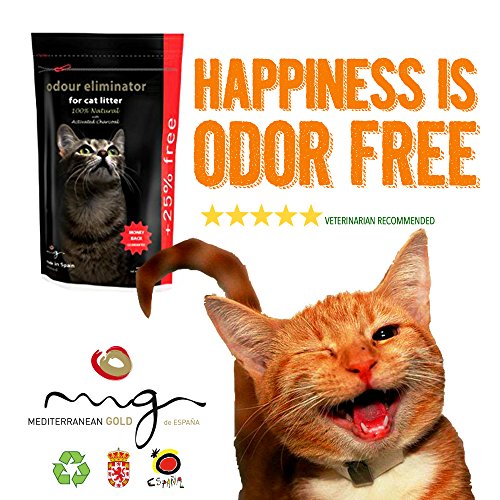 -. Feature : ELIMINATES ODORS: A scientific breakthrough in odor control, eliminates litter box odor in 24 hours or less / PROFESSIONAL STRENGTH: More effective than baking soda, zeolite, activated bamboo or coconut charcoal; it doesn't just mask odors, it actually eliminates them / 100% NATURAL AND FRAGRANCE FREE, made in Spain from the recycled by-product of olive production, and is green, sustainable, and non toxic; safe to use around cats and children / LONG LASTING: A little goes a long way because one bag treats many litter changes