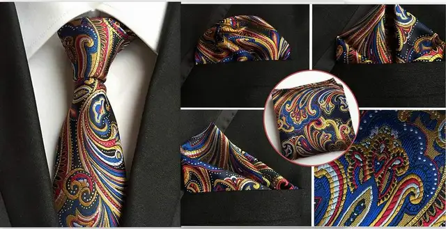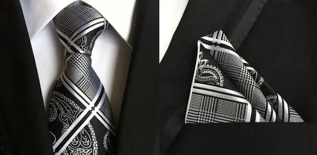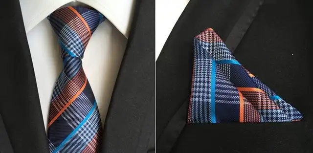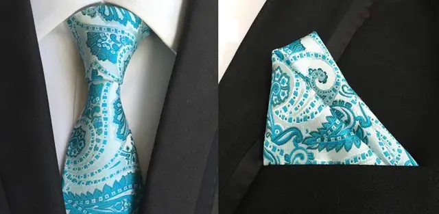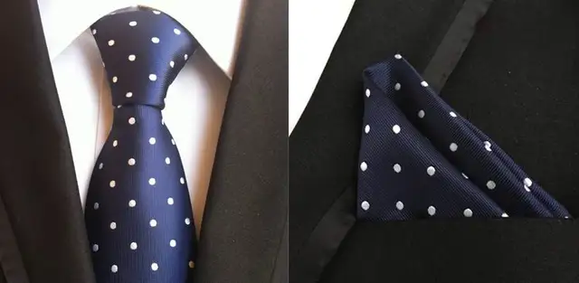 | [해외]2017 새로운 클래식 기하학적 도트 화이트 블루 남성 실크 넥타이 넥타이 손수건 손수건 세트 |