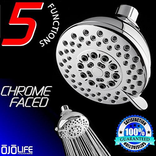 Shower Excellence by OjoLife Innovations - Super Luxury Hotel & Spa Quality 5 Setting Variable Spray Oversize Hands Free Wall Mount Shower Head - Chrome Finish & Self Cleaning Nozzles - Easy Install