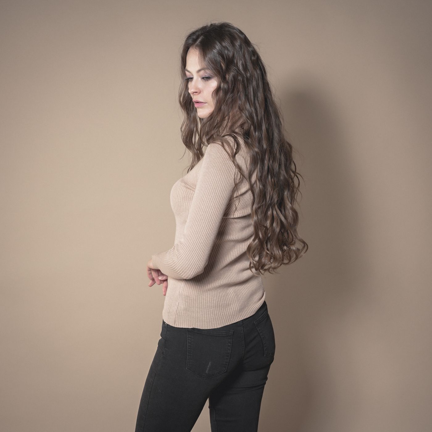 반하이넥 골지 니트탑으로 컬러감도 좋고 너무 짧은 길이가 아니여서