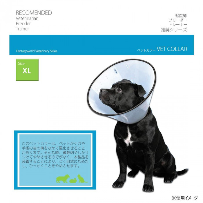 ケガや手術後に傷口をなめたり、ひっかいて悪化させないように装着します。全体的に透明感があり視界良好。外側のリムが平衡感覚、視界バランスも保ちます。 製造国:中国 素材・材質:本体:PEプラスチック、ふち:ポリエステル10%・ネオプレン90% ※サプライヤー直送品 ご注文後2~3営業日後の出荷となります【商品名】FANTASY WORLD 犬 猫用ラクラクペットカラー VET Collarベットカラー XLサイズ クリア VC-5