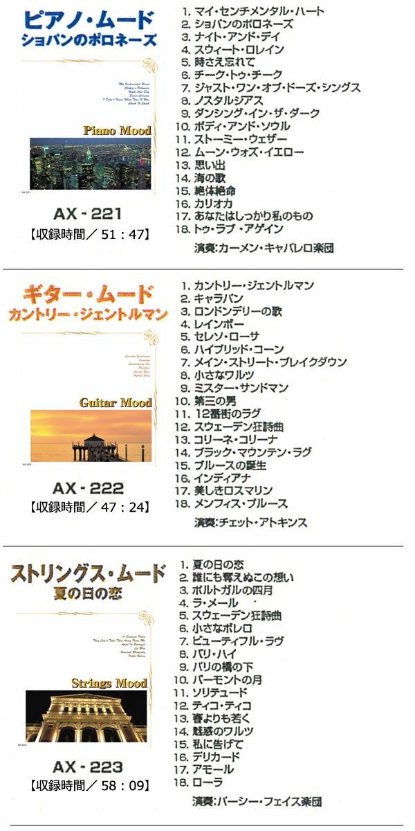 名曲の美しいメロディに酔いしれる。その珠玉の旋律の数々が、貴方の心をやさしく包み込みます。 製造国:台湾 セット内容:CD10枚組 ※サプライヤー直送品 ご注文後2~3営業日後の出荷となります【商品名】魅惑のムード・ミュージック CD 10枚組 AX-221~230