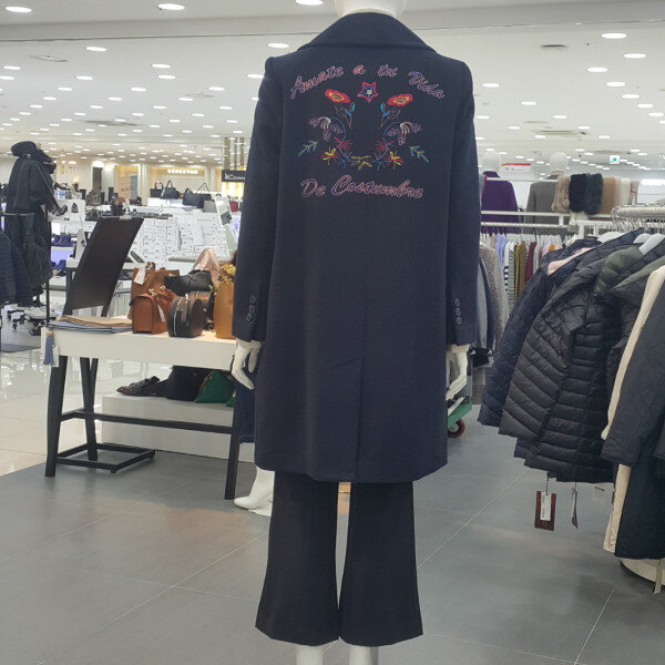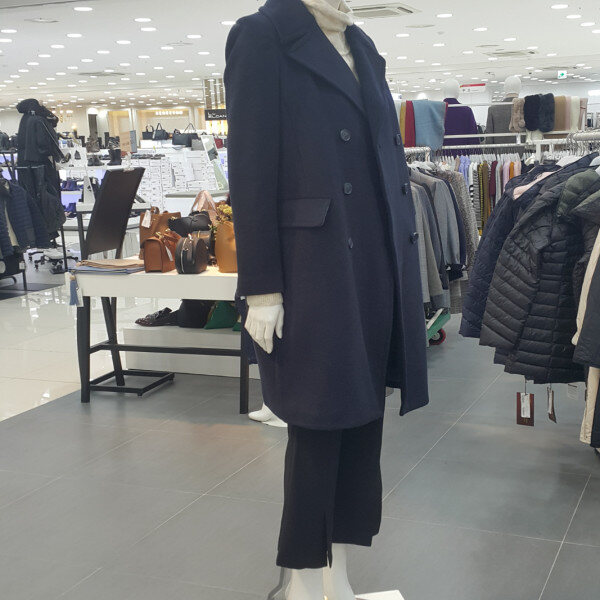 더블단추형에 기본스타일코트입니다뒷자수포인트가멋스러움을 더해주는스타일입니다
