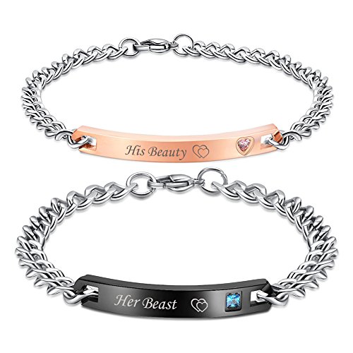 Perfect Gift for Couples Classic design and quality craftsmanship make these beautiful bracelets a gift your friends and family will cherish for years to come. Bracelets have a high polished finish that shines,This couple set of bracelets are with high polishing skills,which makes the bracelets more exquisite, and come wrapped in a cute jewelry bag and enclosed in a gift box.So simple and beautiful.It will be a perfect creative gift for him and her.