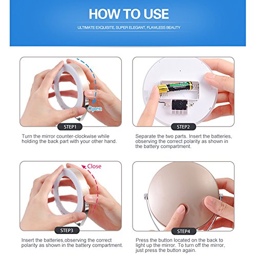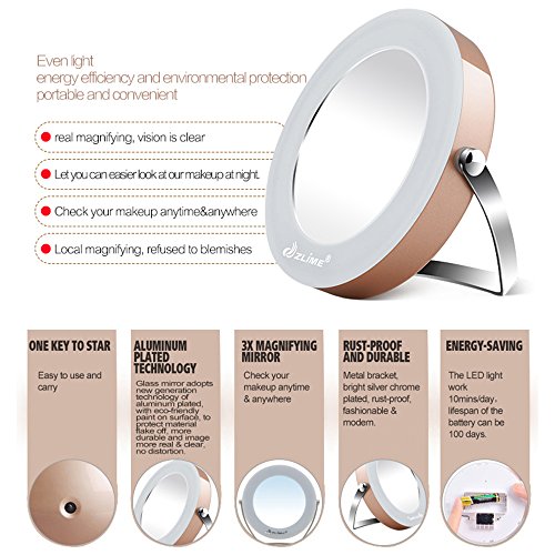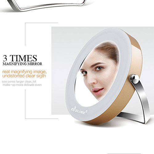 ZLIME 360 Rotatable Handheld Desktop Circle 3x Magnifying LED Lighted Makeup Mirror with Stand Holder