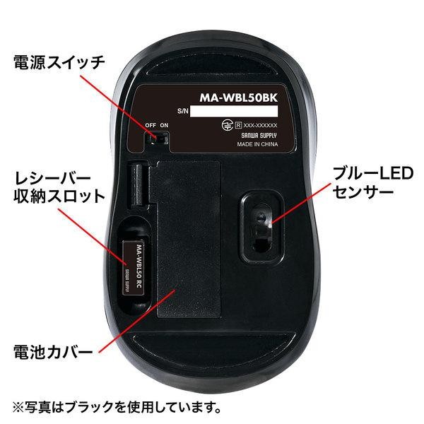 スタンダードな左右対称形のワイヤレスブルーLEDマウス。