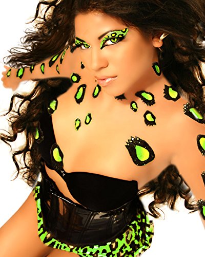 -. Title : Purr Temporary BODY ART Dancer Neon Green Leopard P.R.Int Cat Costume Xotic Eyes