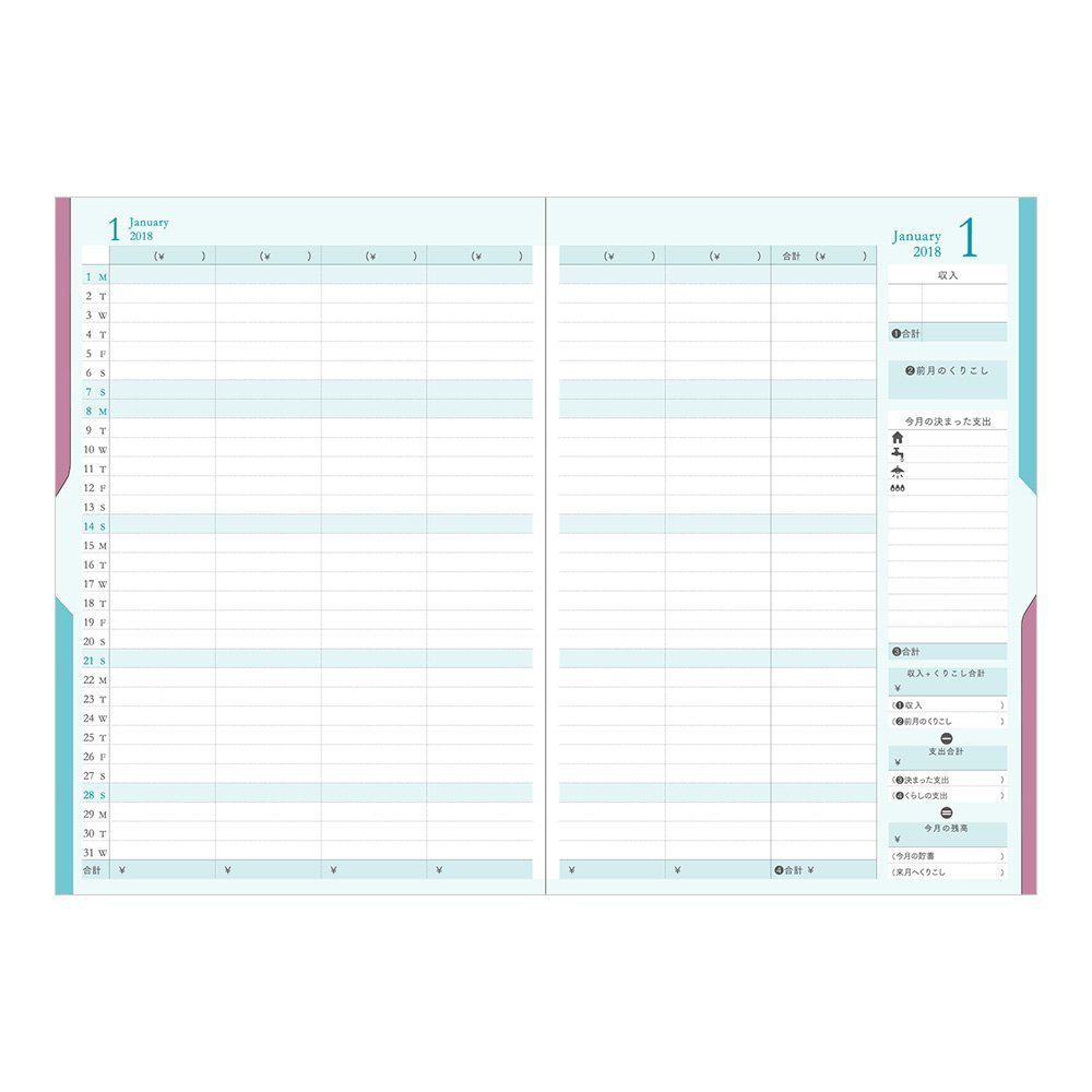 We set up a monthly block type schedule page and a household account book page that can grasp the daily balance of the same month.