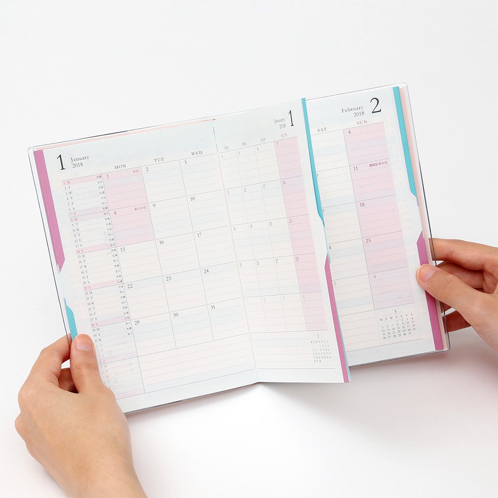 Only the schedule page holds the red index, only the schedule page holds the blue index, only the household account book page opens, and if you hold down the white index between the red and the blue, the schedule and the household account book are opened alternately.