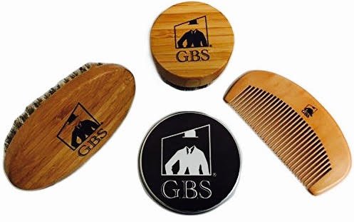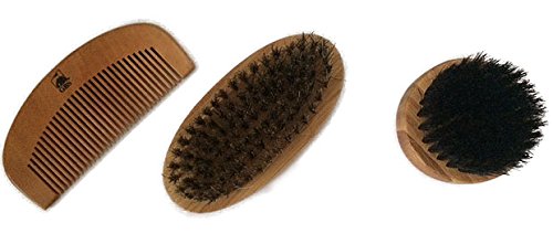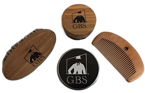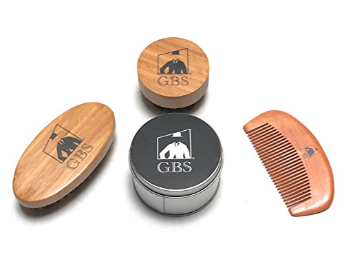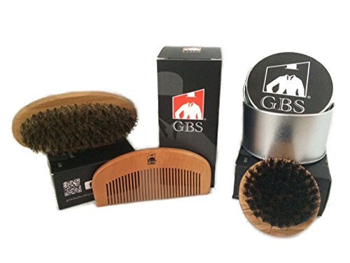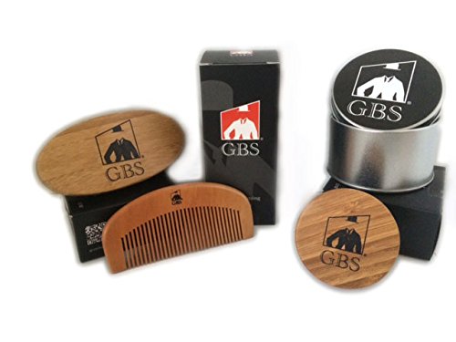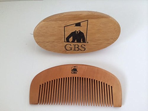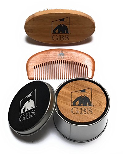 GBS Combo Set (3 Pc Kit) Premium Oval Wood Beard Brush with Boar Bristles, Bamboo All Fine Bear...