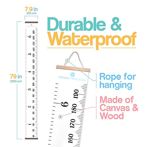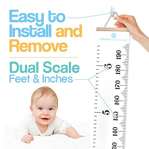 Studio : Ashtonbee Publisher : Ashtonbee Binding : Baby Product Product Description In line with Ashtonbee's mission to make every moment spent with baby a memorable bonding experience, we're introducing our Baby Height Growth Wall Chart , which is a portable ruler that comes in a modern, sleek design, which makes it a cute and charming wall decor that can suit any room, or area of your home. Dimensions, materials, and hanging instructions: 79'x7.9'/200cm x20cm (LxW) white canvas with wooden frames on both ends Chart starts at 1.96"(5cm) since the bottom is 1.96" of wood Please hang it 1.96" away from the ground to ensure accuracy. It's a recommended gift for parents and parents-to-be for baby showers, gender-reveal parties, birthdays, holidays, etc. Ashtonbee is a brand trusted by mommies, daddies, and grandparents for their little bundles of joy as our products are 100% guaranteed safe for baby. We are confident in the quality of our products, and should you find anything unsatisfying with your purchase, we are willing to provide you a full refund. This is how much we trust our products, and how much we want our Ashtonbee family to be happy. 0