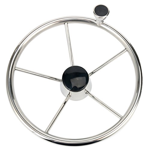 Amarine-made 5-spoke 13-1/2 Inch Destroyer Style Stainless Boat Steering Wheel with M Size Knob - 9310SRF1